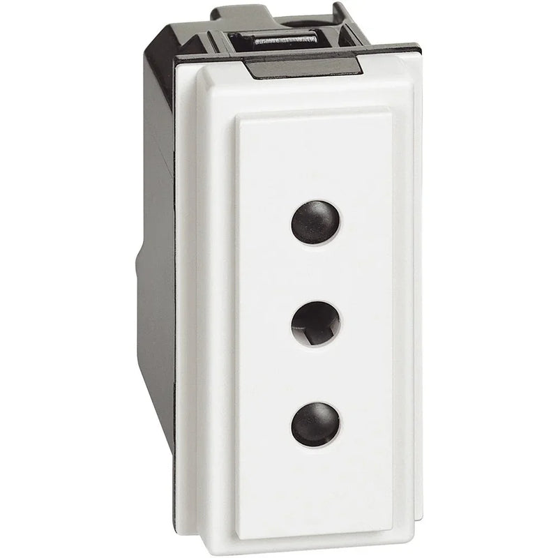 Questa presa è conforme a standard di alta qualità. Presenta una configurazione bipasso con interasse di 19 mm e 26 mm, rendendola compatibile sia con spine standard italiane (2 P e 2 P+T 10/16 A) che tedesche (2 P+T 16 A). Ecco alcune caratteristiche chiave: