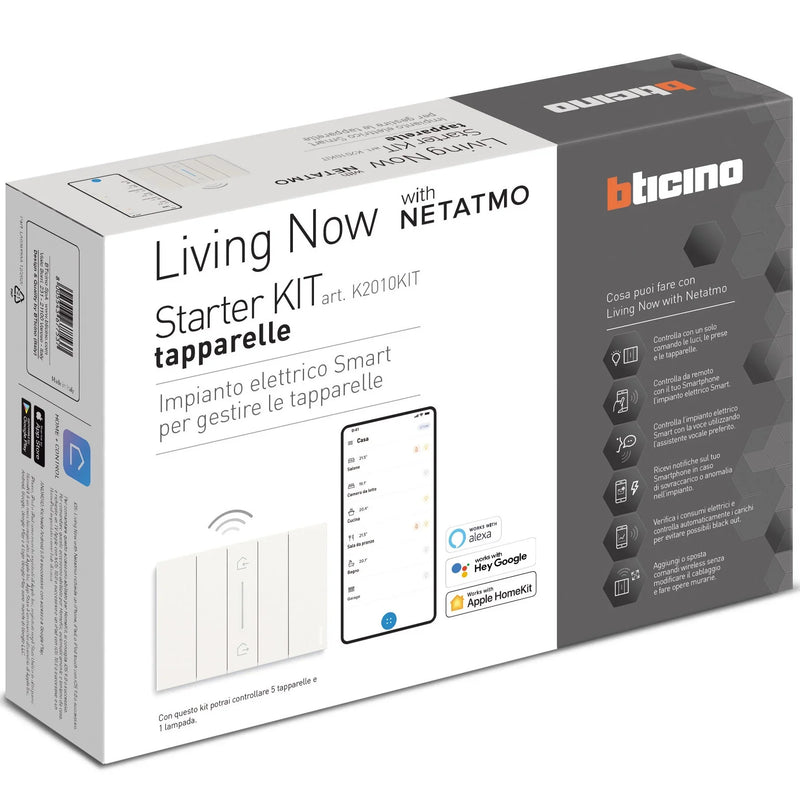 Scopri il Kit Starter Tapparelle Connesse BTicino Living Now K2010KIT, la soluzione ideale per gestire in modo semplice ed efficiente le tapparelle della tua casa. Questo kit avanzato è progettato per facilitare la gestione della luce naturale e migliorare il comfort domestico, tutto con un solo sistema.