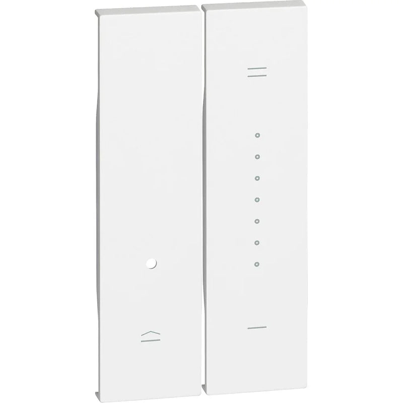 Personalizza l'illuminazione dei tuoi ambienti con l'eleganza della serie Bticino Living Now. La cover KM19 è l'elemento estetico da 2 moduli progettato per rifinire i variatori di luminosità (dimmer), permettendoti di regolare l'intensità della luce con un tocco fluido e preciso.
