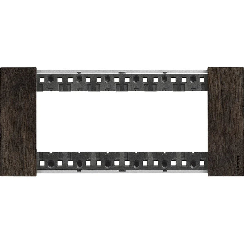 Design Ultra-Flat: Nonostante l'uso del legno, la placca mantiene lo spessore minimo distintivo della serie, integrandosi a filo muro.