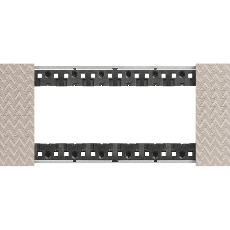 Questa placca da 2 moduli è l'ideale per i punti luce singoli di rappresentanza, dove il dettaglio materico fa la differenza tra un impianto elettrico comune e una scelta di interior design superiore.