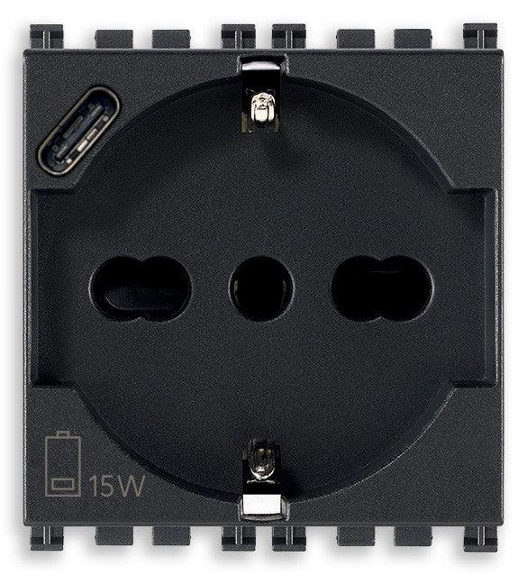 Scopri la Presa VIMAR 2P+T 16A universale con USB C, modello 19210.USB, un dispositivo innovativo che combina la praticità e la sicurezza in un design elegante grigio. Questa presa è perfetta per qualsiasi ambiente, sia domestico che professionale, e rappresenta un'ottima soluzione per ricaricare i tuoi dispositivi elettronici senza il rischio di sovraccarico.